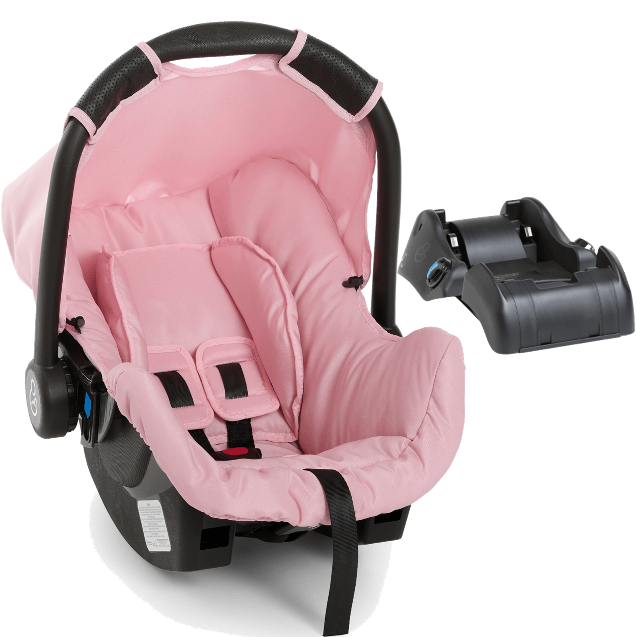 O bebê conforto possui cinto de segurança de 5 pontos com protetores, capota retrátil com proteção UV50+ e alça de apoio.