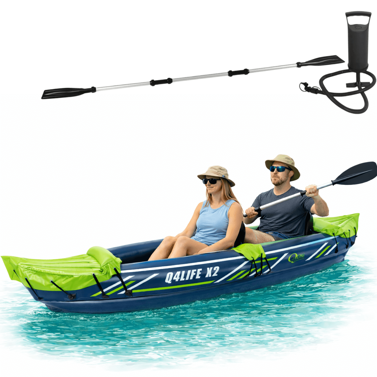 O produto acompanha remo de alumínio desmontável, que pode ser utilizado como remo duplo ou separado em dois remos individuais com uma pá cada. O kit inclui ainda bomba de ar manual para enchimento e kit reparo para pequenos ajustes.