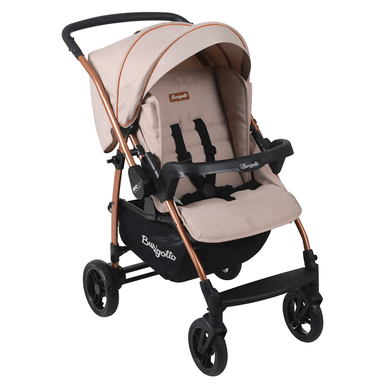 O Carrinho Burigotto Rio K 22 está disponível nas cores Preto Cobre, Mon Amour e Mesclado Preto. Todos os modelos possuem acabamento de alta qualidade, costura reforçada e estrutura leve, combinando elegância e praticidade. O design moderno reflete o padrão Burigotto, que une segurança, conforto e estilo em cada detalhe.