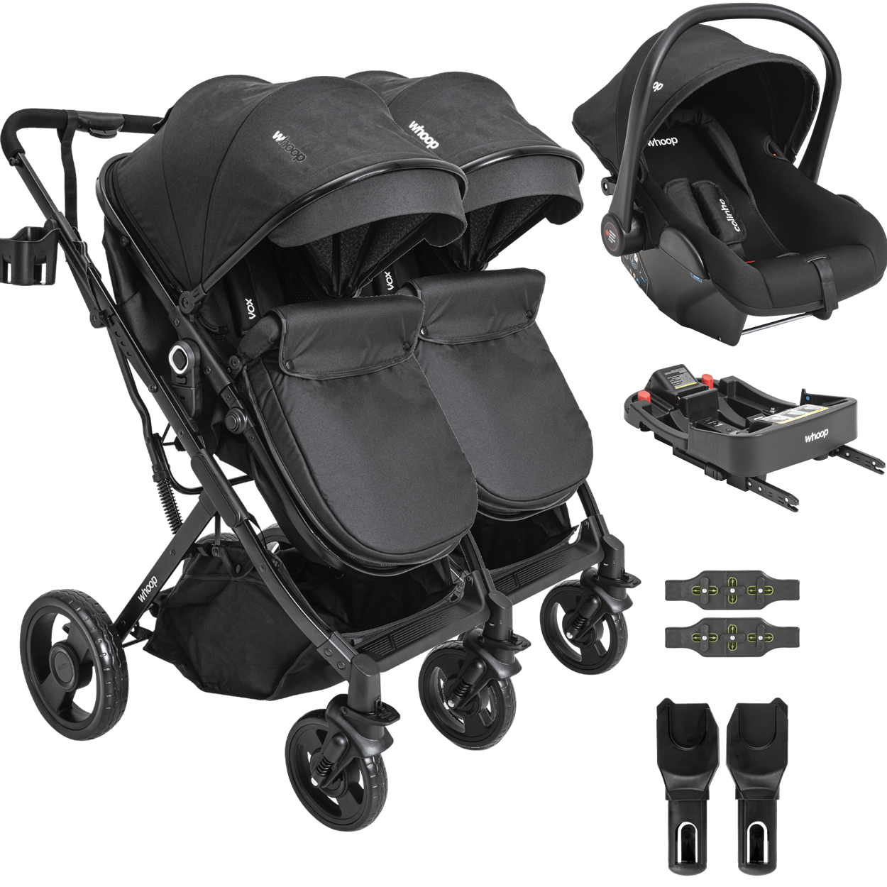 Carrinho Kiddo Gemeos Bebe Conforto Colinho Base ISOFIX Vox Preto