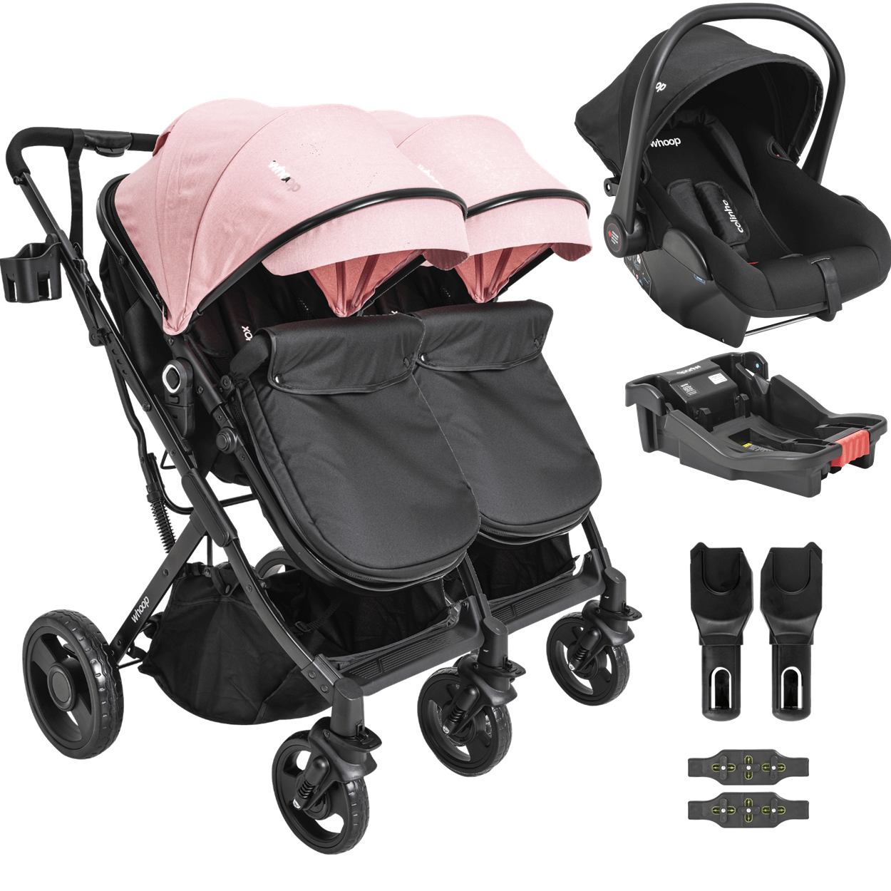 O Carrinho de Bebê Kiddo Vox II Gêmeos está disponível nas cores Preto, Marinho e Rosa — todas elegantes e versáteis para acompanhar a rotina da sua família com estilo.