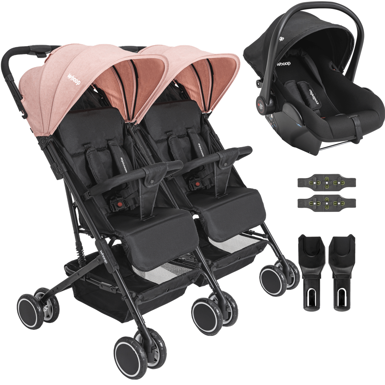 Carrinho Kiddo para Gemeos Bebe Conforto Colinho Mascote Rosa
