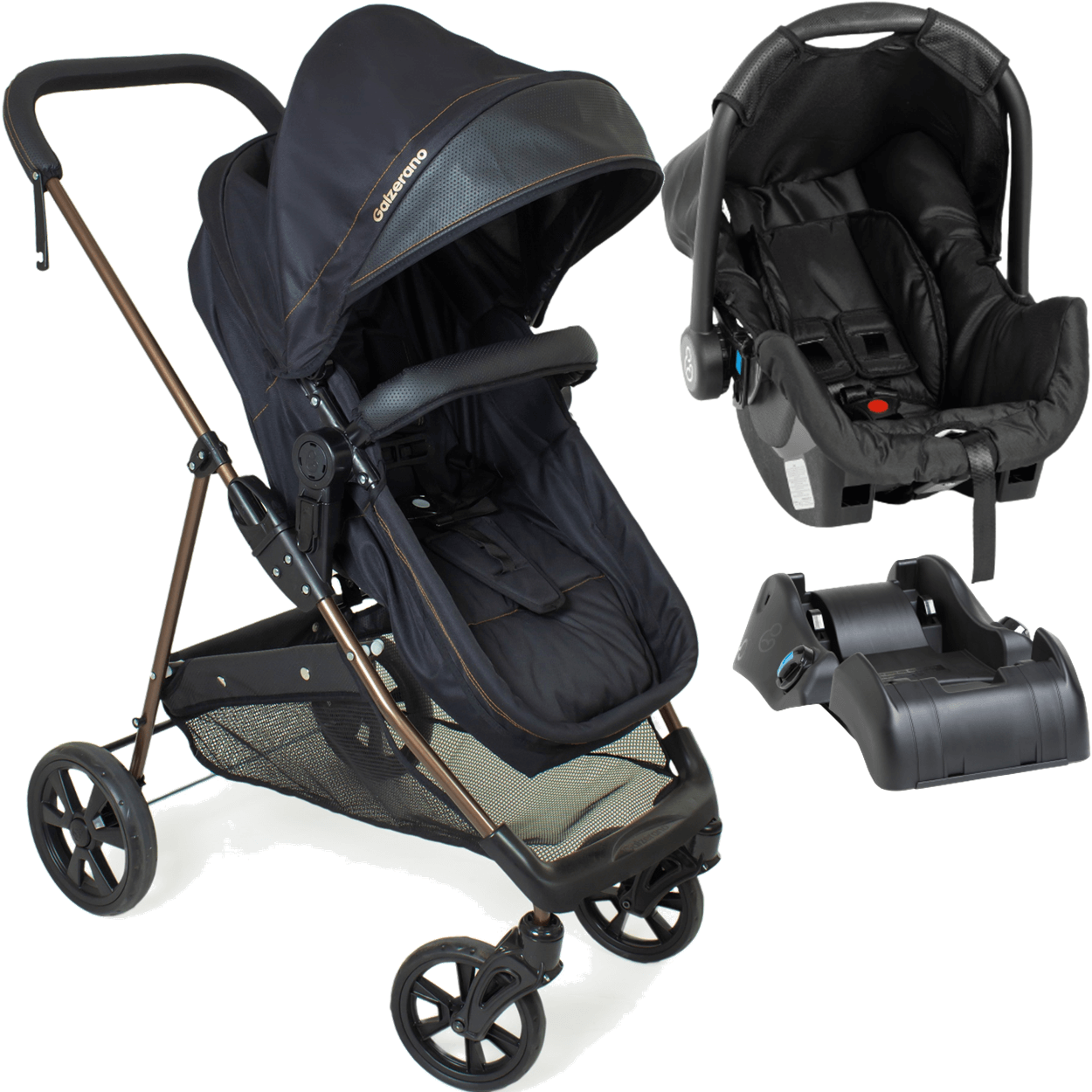 1 (um) Carrinho de Bebê Galzerano Napoli G22 Preto Cobre